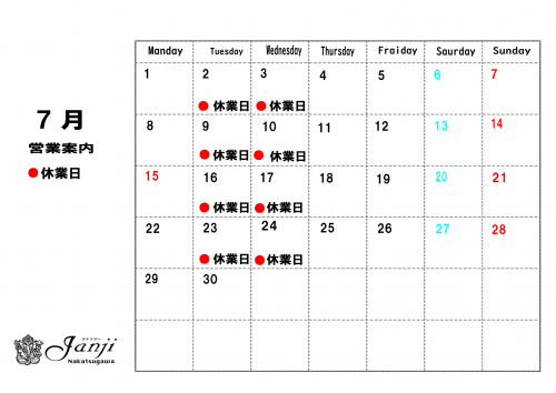 6月の休業日のご案内»